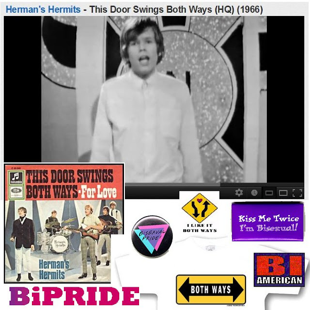 I really doubt that in 1966 Herman’s Hermits, in their song “This Door Swings Both Ways,” were singing about bisexual love, but it’s fun to imagine it. And for the most part in our history of GLBT music, imagine is what you almost all of the time had to do to find bisexuals represented. A few years ago I did a two-part show on this subject, and I had to really, Really dig to complete those two hours. Check them out Here. Now, I’m not talking about music by out-of-the-closet bisexuals, that’s not all that tough…I mean songs whose lyrics “go there.”