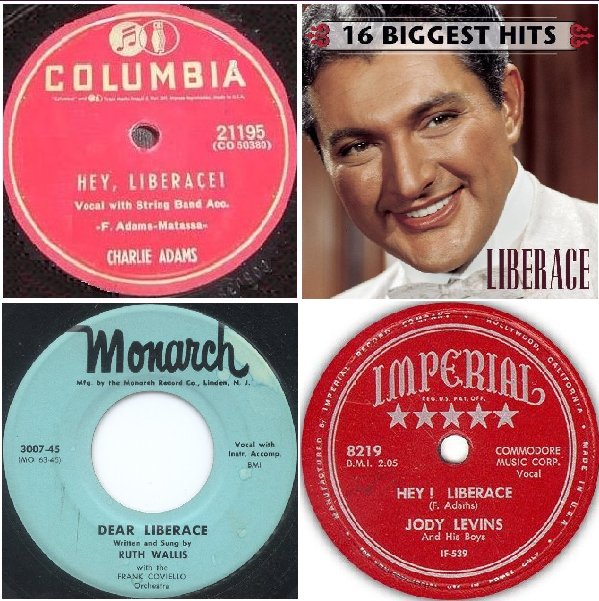 But this blog’s main focus is on songs about Liberace, and my research found many more than expected. It seems the ball got rolling in 1953, with three recordings. Probably attracting the most attention was the one on Columbia Records by Charlie Adams & the Lone Star Playboys. If you think that name sounds like a sort of hillbilly act, you would be correct, as you can hear in the YouTube clip below of the song “Hey, Liberace.”
