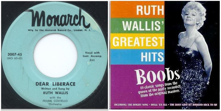 Back to the Ruth Wallis record I mentioned at the start. Wallis died in 2007 and I’m so impressed with her that she is likely the only straight artist to have a tribute page on my website. A number of years ago record collecting magazine Goldmine ran an interview with her, and it covered her song, “Dear Liberace.” She indicated she had an earlier song, “Dear Arthur Godrey,” and she decided to update it. She said, “I started to write a song for Liberace, he was a wonderful person. He was going to get married at the time, and I couldn’t fathom it. So I started writing what was going to be a takeoff on ‘Dear Mr. Godfrey,’ it was going to go something like, ‘Dear Liberace, don’t marry that darn girl. I could understand that now – Lee couldn’t have married that girl anyway. But Lee was a lovely person.”