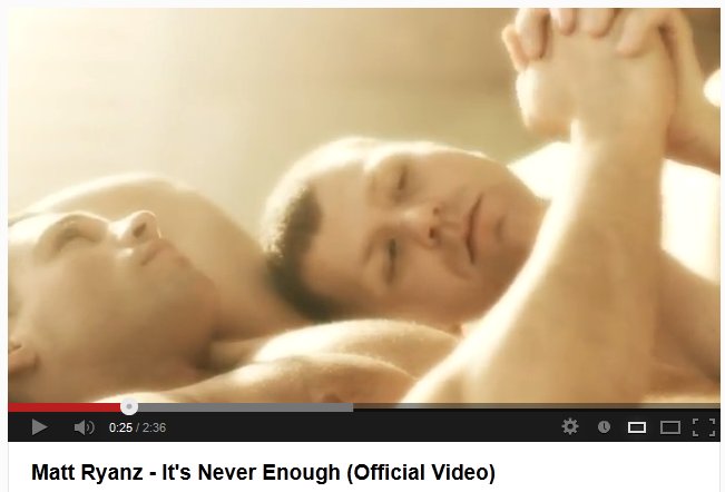 What’s not to love about a man-on-man video? Okay, this one’s not porn, although it does feature adult film star Derek Atlas. It’s a sexy telling of perhaps a pending breakup, done by New Yorker Matt Ryanz, who I’ve played a lot on my shows this year.