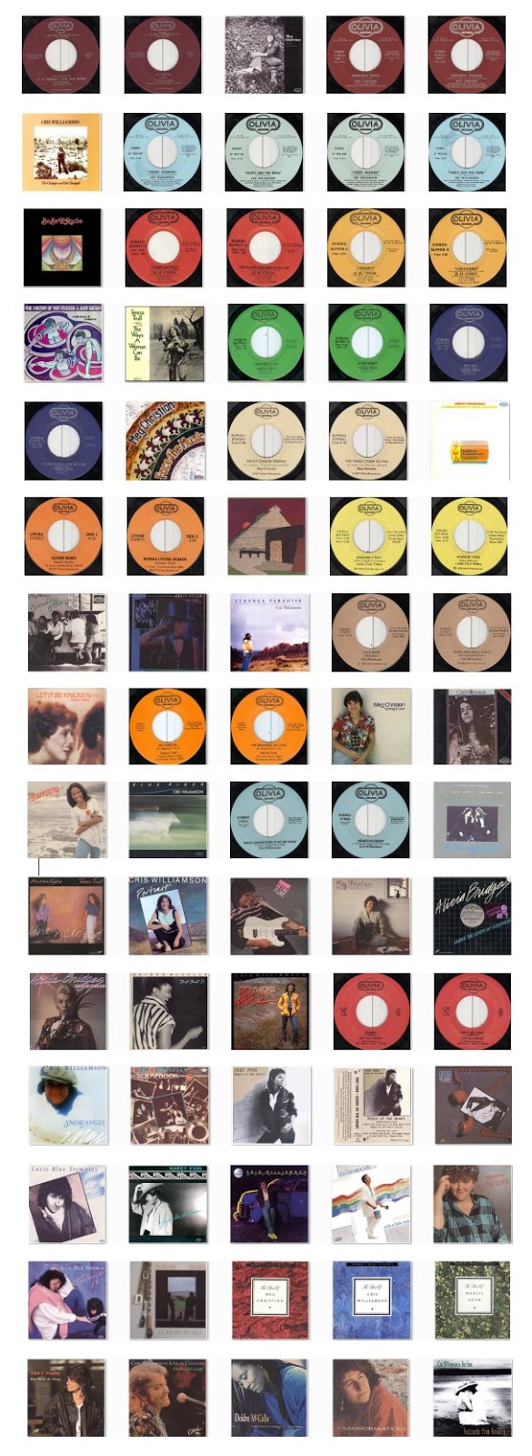 I’ve been told that January 19, 1973, is considered the founding date for Olivia, so I wanted to do a special video collage to honor that. It displays every 45 rpm record, and every album and CD released on the label, from 1974 through 1993, shown in order, and includes their subsidiary Second Wave Records.