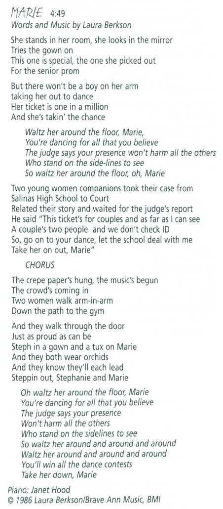 Laura Berkson put the story into a song, called “Marie,” from her 1989 self-titled cassette tape.
