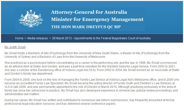If the script is too small for your browser, in short she and one other were selected out of 82 candidates for appointment to the Federal Magistrates Court of Australia.